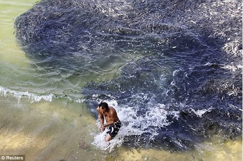 墨西哥海滩怪象 游客遭鱼群骚扰(图)(4)
